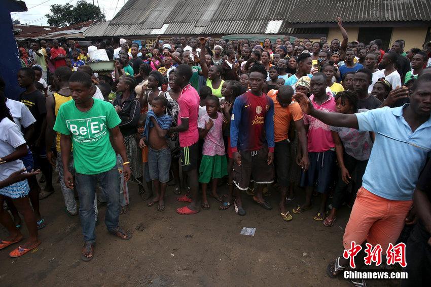 当地时间2014年8月16日,利比里亚蒙罗维亚,数百人冲击西点贫民窟的一个埃博拉隔离中心,将病人带走。他们高喊着“西点没有埃博拉”,许多人还声称埃博拉疫情是一个骗局。一名护士说,大约有10名病人晚上逃离了该中心,因为这里没有药物治疗他们。埃博拉疫情已在西非四国造成一千多人死亡,其中大部分在利比里亚。图片来源:CFP视觉中国