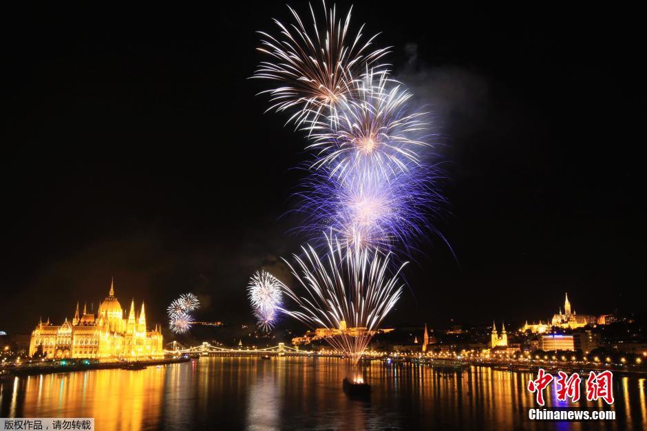 匈牙利庆祝圣斯蒂芬日到来 炫彩烟花点亮夜空