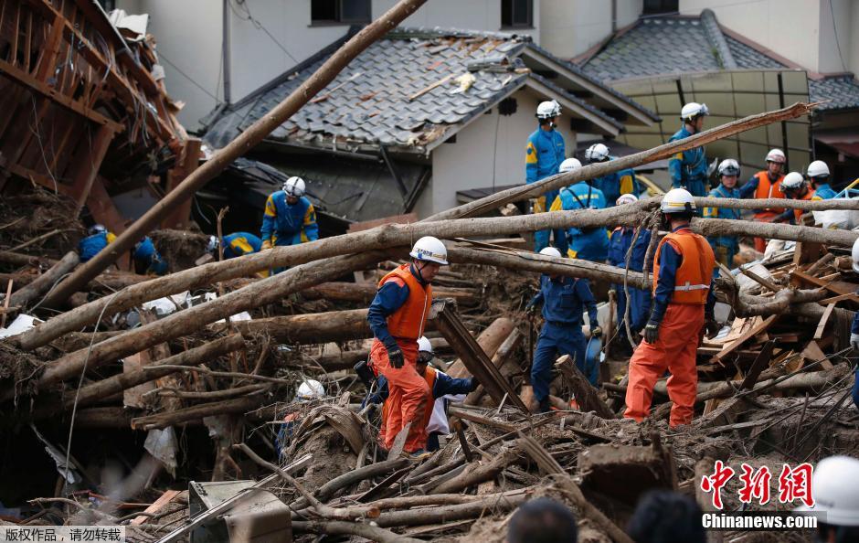 当地时间2014年8月21日,日本广岛市,受19日晚至20日凌晨的暴雨影响,日本广岛市发生了山体滑坡和泥石流,山谷内的多处住宅被冲走。据日本警察厅发布的消息,截至当地时间20日晚11时,泥石流已造成39人死亡,7人失踪,另有多人受伤。