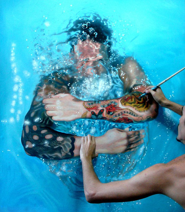 委内瑞拉艺术家手绘游泳者逼真似实景(组图)