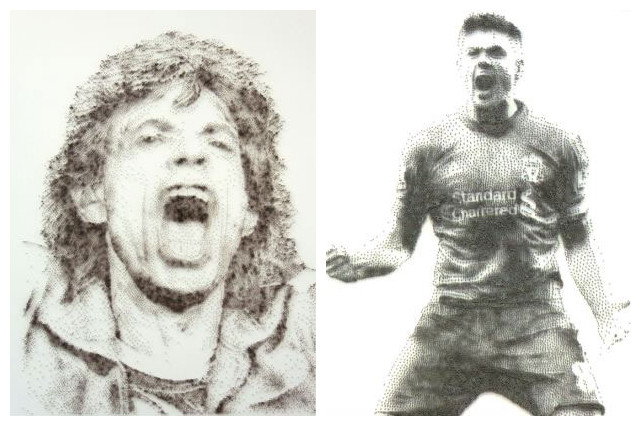 据英国《每日邮报》8月26报道,英国沃灵顿市的一名52岁的艺术家用锤子和钉子制作出了一幅幅美丽的名人肖像,其中包括玛丽莲·梦露、“披头士”,甚至是英国女王。这位艺术家名叫大卫·福斯特(David Foster),目前已经用完了近3万颗钉子。