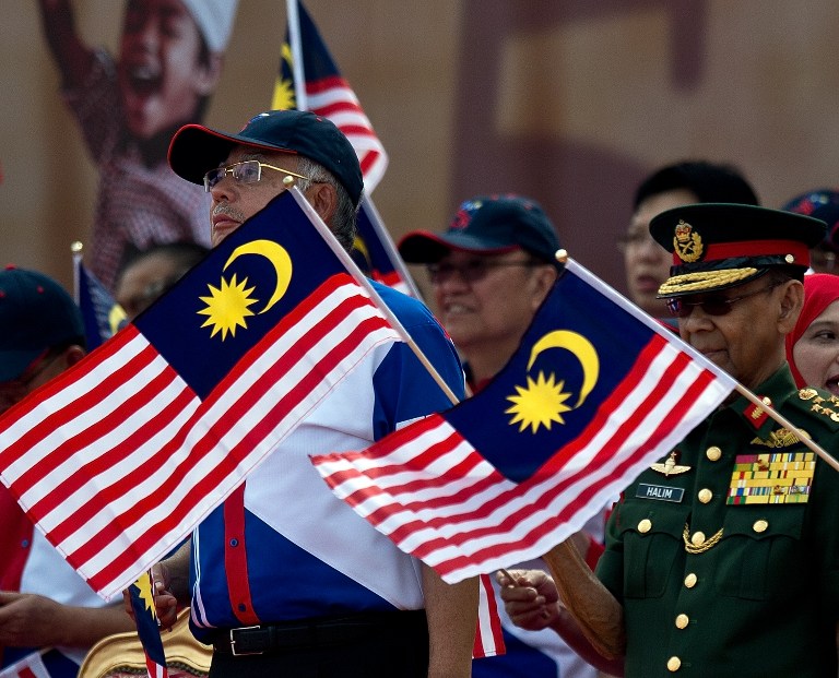 马来西亚最高元首阿卜杜勒·哈利姆·穆阿扎姆·沙阿以及总理纳吉布观看阅兵仪式。