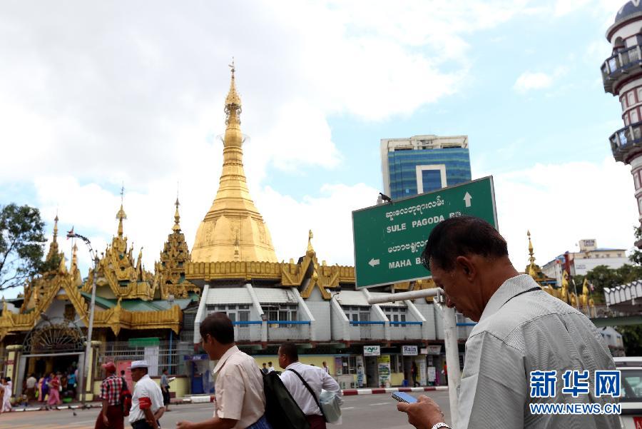 9月1日,在缅甸仰光,一名男子使用手机。