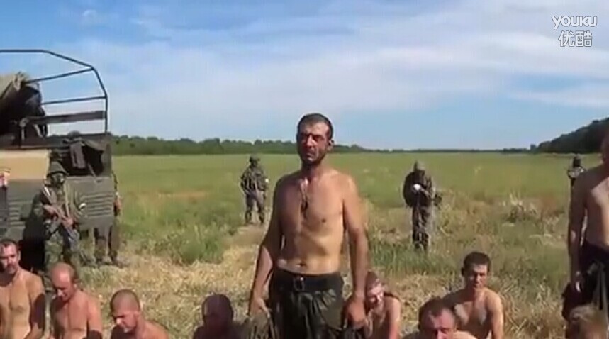 近日,乌克兰东部武装俘虏一批乌克兰政府军士兵,乌军俘虏被要求脱光膀子,而东部武装则挨个检查有无纳粹纹身。