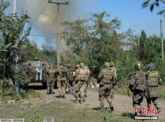 资料图:当地时间8月26日,乌克兰政府军在乌克兰东部顿涅兹克州的伊洛瓦伊斯克市(Ilovaysk)与民间武装人员持续交火。