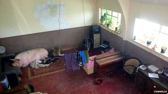 英国伊普斯维奇一套房屋近日出售,房地产网站Rightmove展示参考图片,赫见一只猪躺在客厅里休息,引发猜测。