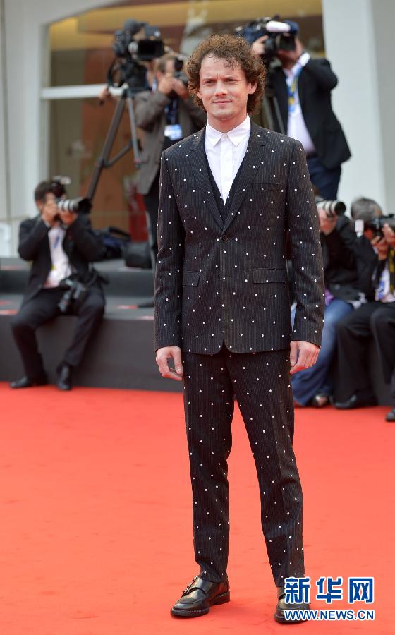 9月3日,在意大利威尼斯利多岛举行的第71届威尼斯电影节上,影片《辛白林》演员安东·叶尔钦亮相红毯。由美国导演迈克尔·阿梅雷达执导的《辛白林》将参与地平线单元的评选。 新华社记者刘力航摄