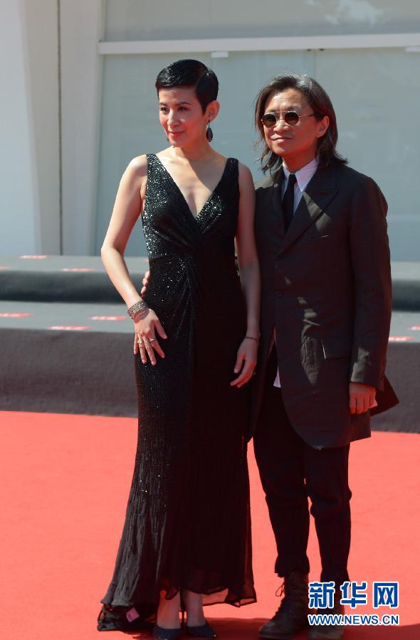 8月28日,在意大利威尼斯举行的第71届威尼斯电影节上,展映影片《亲爱的》导演陈可辛(右)和夫人吴君如亮相红毯。第71届威尼斯国际电影节于8月27日至9月6日在意大利威尼斯举行。 新华社记者刘力航摄