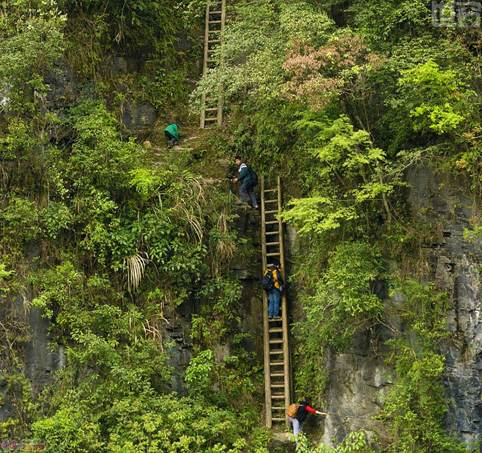 中国湖南张家湾村,这个仅有100户人家的山村几乎与世隔绝,只有一条条天梯将它与外界连接起来。山村的孩子们每天只能通过爬上垂直90度、且没有安全保障的天梯才能去镇上的学校读书。