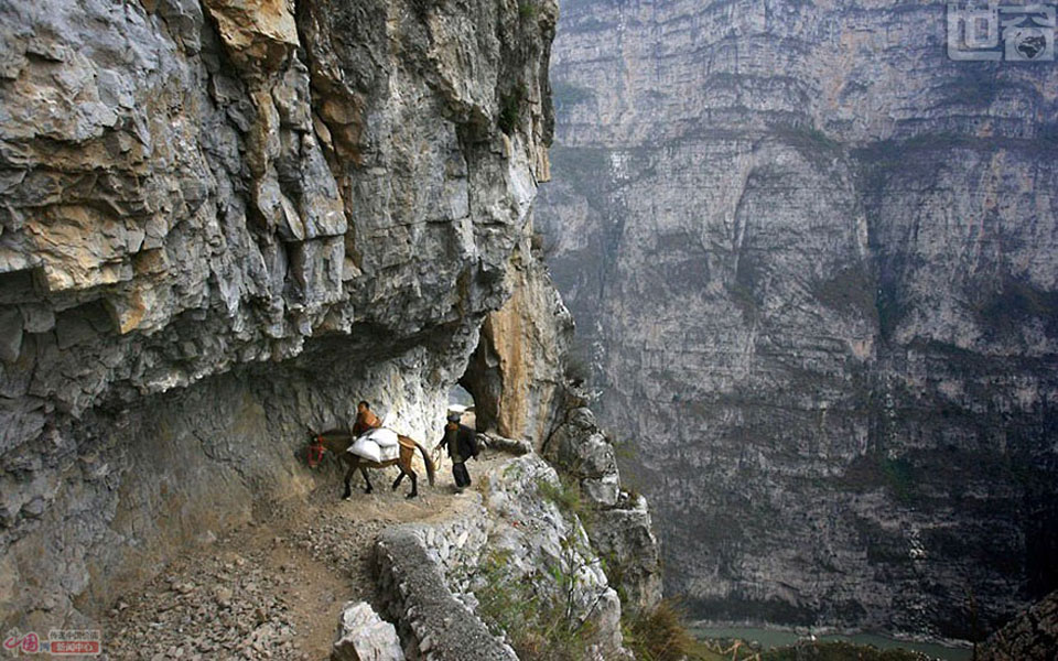 中国四川古路村小学的一名学生在爷爷的陪同下,骑着毛驴上学。古路村是一个偏远的山村,座落于一个存在大量峡谷和悬崖峭壁的国家公园。古路村小学建在半山腰,从山底到学校需要5个小时,是世界上最偏僻的学校之一。