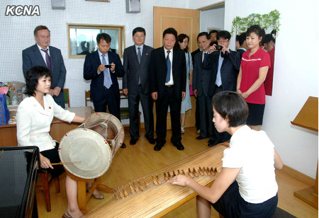 报道称,驻朝经贸参赞团还参观了建成主体音乐最高学府,平壤金元均音乐大学的沿革介绍室、讲堂和音乐堂等各处。