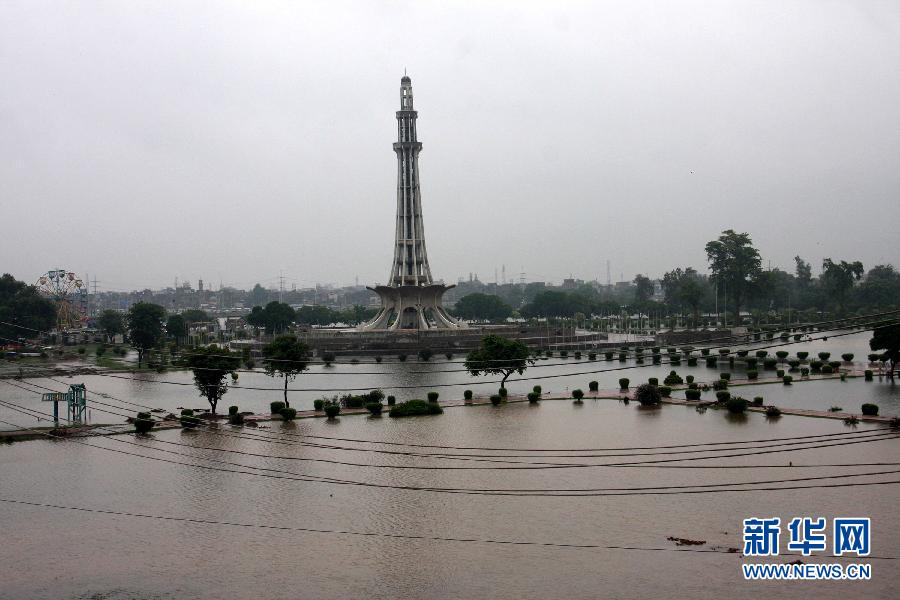 9月4日,暴雨引发的洪水在巴基斯坦旁遮普省首府拉合尔街头泛滥。据巴基斯坦媒体5日报道,巴东部旁遮普省等地区过去两天的暴雨已造成至少72人死亡、100多人受伤。 新华社发(贾米勒·艾哈迈德摄)