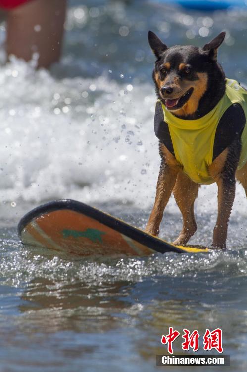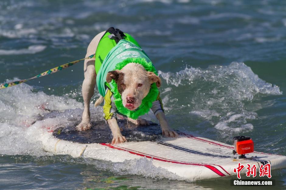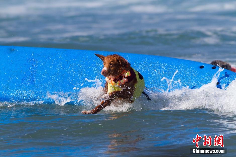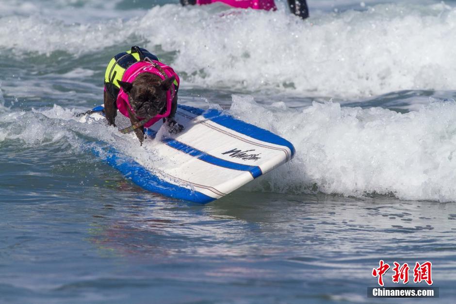 当地时间2014年9月9日,美国举办冲浪狗大赛,可爱萌宠携奇葩造型登场,大秀冲浪绝技。图片来源:Osports全体育图片社