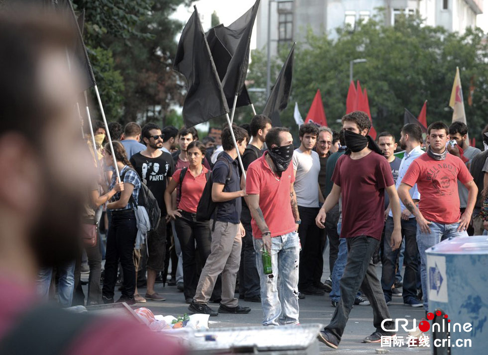 当地时间2014年9月7日,土耳其伊斯坦布尔示威者抗议电梯坠落事件,与防暴警察冲突。6日尔希什利区一处建筑工地的电梯从32层楼高处坠地,致10名工人死亡。 图片来源:OZAN KOSE/CFP