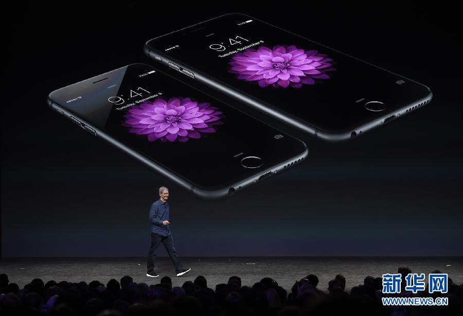9月9日,在美国加利福尼亚州的丘珀蒂诺,美国苹果公司高级副总裁菲尔·席勒在发布会上介绍新产品。当日,美国苹果公司举行新品发布会,推出iPhone 6等产品。 新华社发