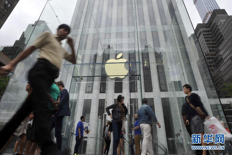 9月9日,在美国纽约曼哈顿,人们从第五大道苹果旗舰店前走过。 当日,美国苹果公司推出两款手机新产品,分别为iPhone 6和iPhone6 Plus,同时推出一款手表。 新华社记者王雷摄