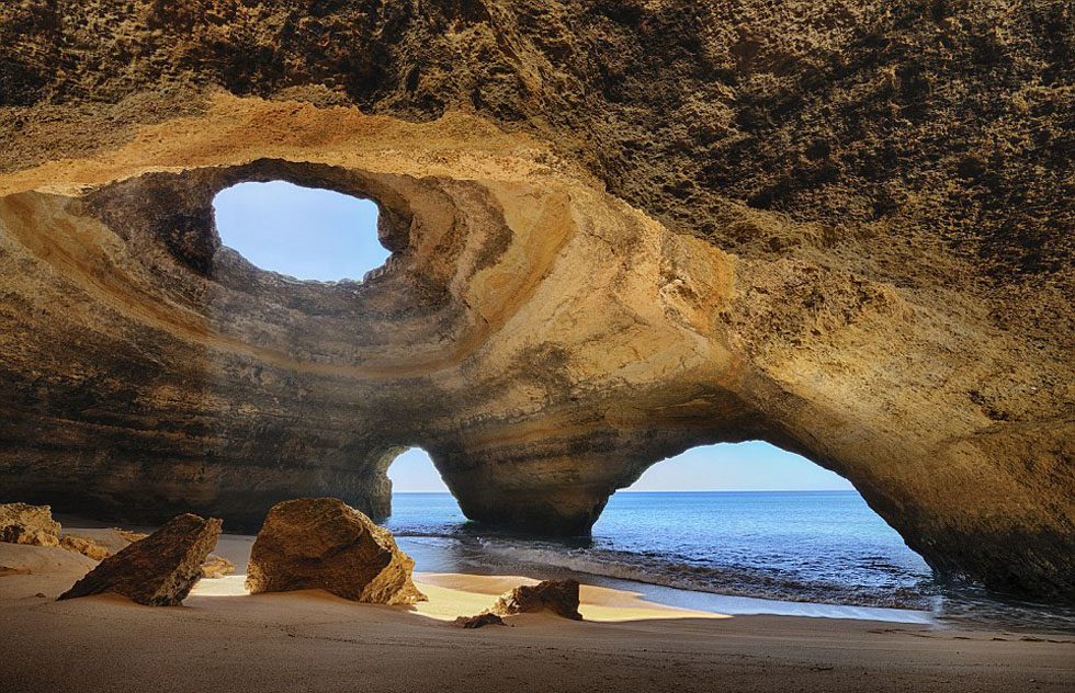 葡萄牙阿尔加维洞穴风景,附近海域还能看到海豚。(网页截图)