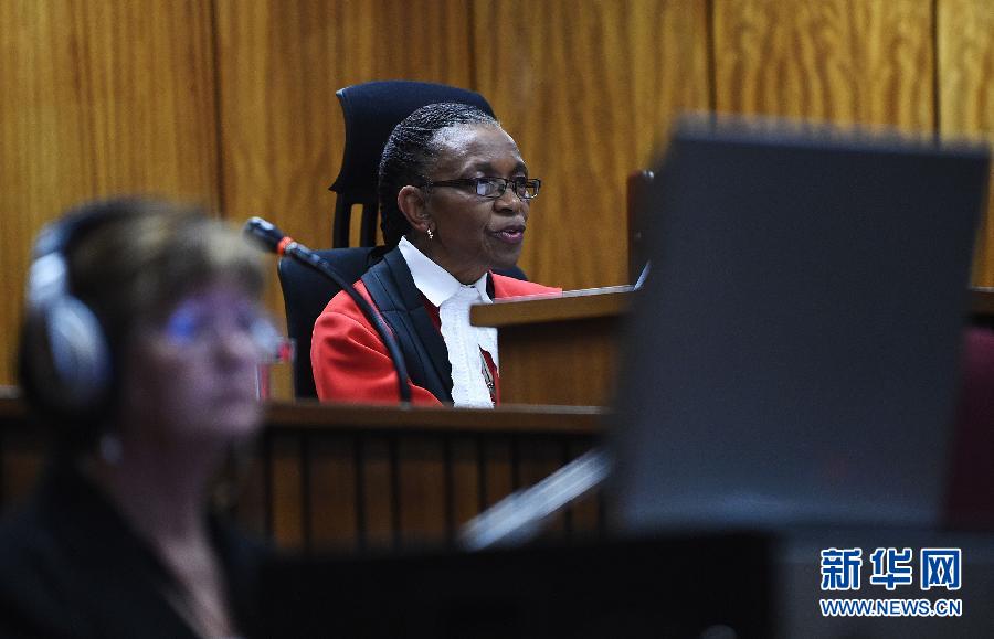 9月11日,主审法官马西帕在法庭上。当日,南非北豪登省最高法院再次开庭审判涉嫌枪杀女友的南非著名残疾人运动员、“刀锋战士”奥斯卡·皮斯托瑞斯。法官马西帕在庭上宣读判决时说,控方没有提供足够证据表明皮斯托瑞斯“预谋杀害”了其女友斯滕坎普。新华社/法新