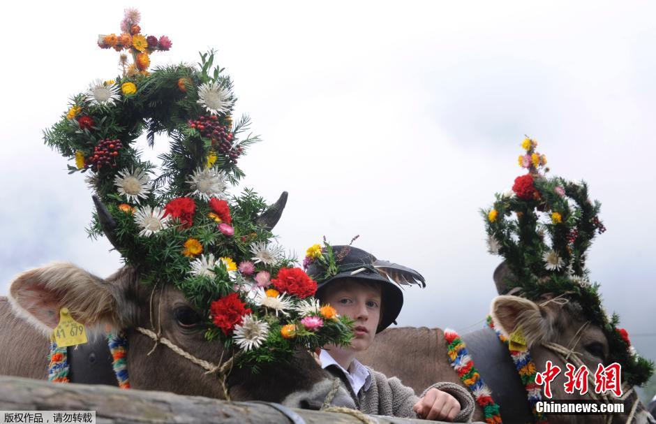 当地时间9月11日,德国巴特欣德朗举办“牛群辞山节”,这是巴伐利亚牧民一年一度的嘉年华,也是此地观光业的一大卖点。约900头牛在农民的督促下,浩浩荡荡地走下山来。下山前,农民们会先给牛群精心打扮,佩戴节日专用铃铛,同时选出一头“形象气质”俱佳的牛打头阵,并给它戴上美丽的花环。