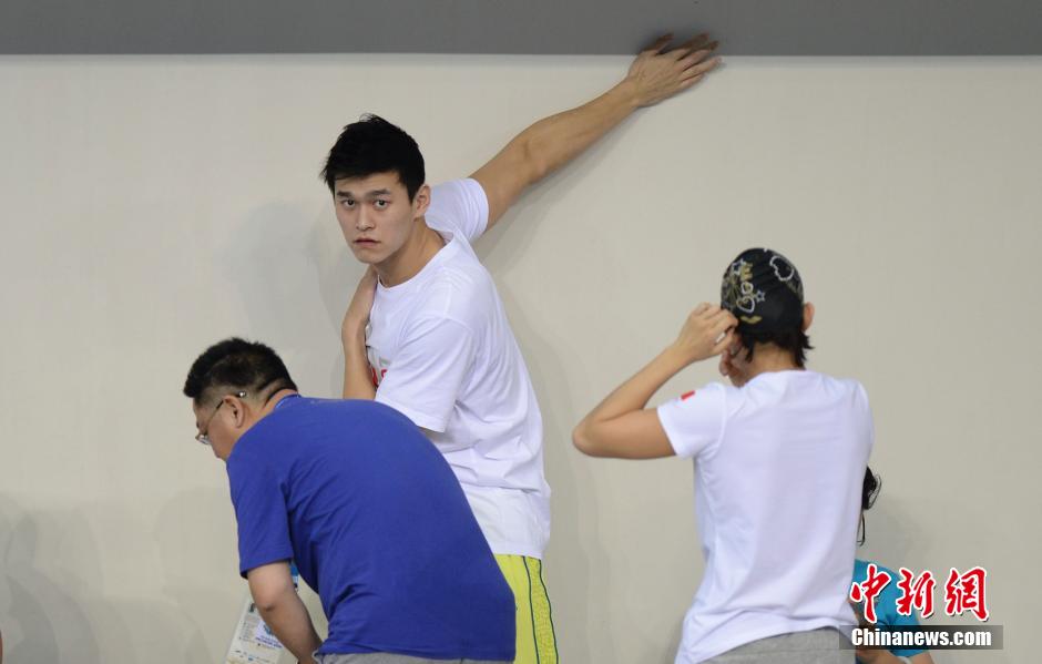 9月17日,中国国家游泳队来到仁川朴泰桓游泳馆训练,中国游泳名将孙杨参加训练。中新社发 廖攀 摄