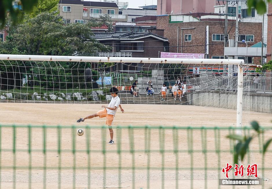 9月17日,韩国仁川亚运会媒体村和运动员村中间,Sung Ri中学的学生正在上体育课。19日,第17届亚运会即将在仁川开幕,但这里的学生的学习依旧如故。中新社发 张浩 摄