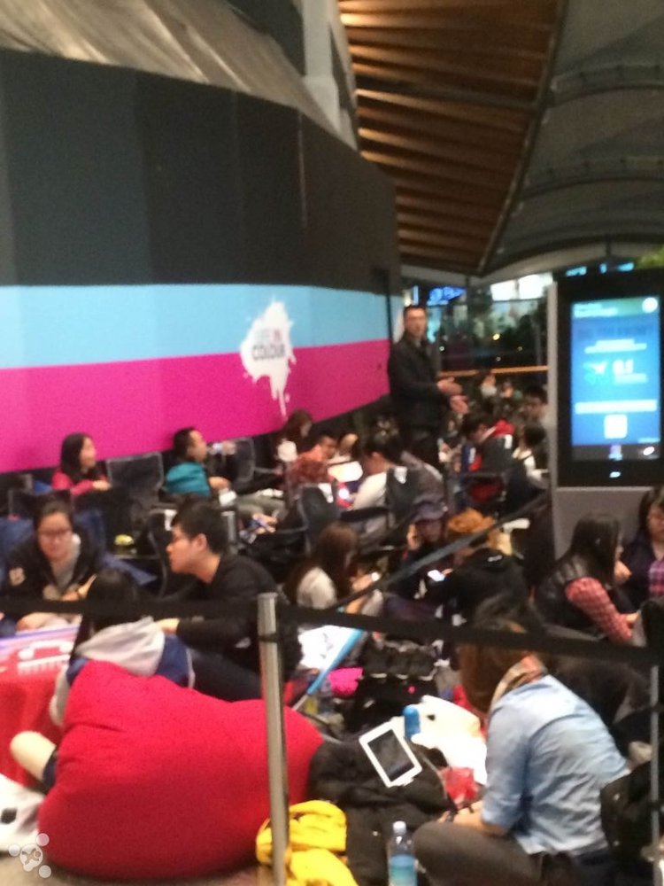 图为墨尔本某商场内苹果店门口,大批中国人排起长队,熬夜等候购买。