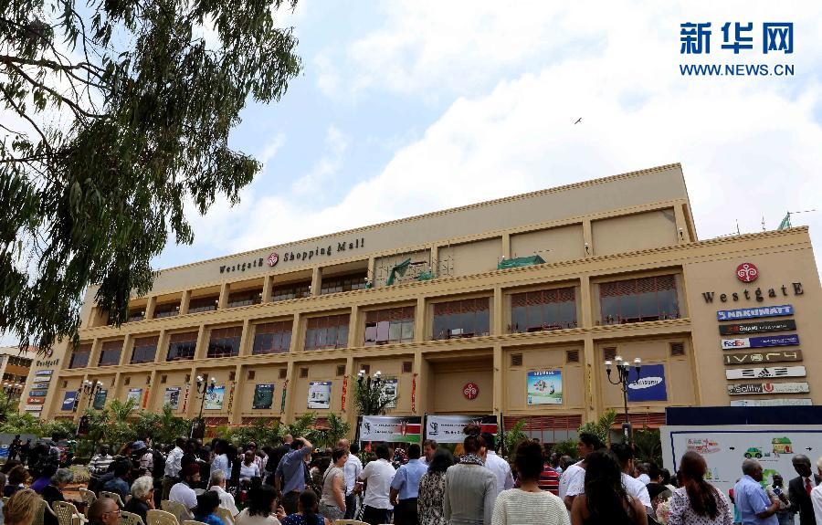 当天,内罗毕群众在韦斯特盖特商场前举行活动,悼念一年前商场恐怖袭击事件中的遇难者。2013年9月21日,韦斯特盖特商场发生严重恐怖袭击事件,这场持续4天的袭击事件造成包括妇女和儿童在内的67人丧生。新华社记者张晨摄