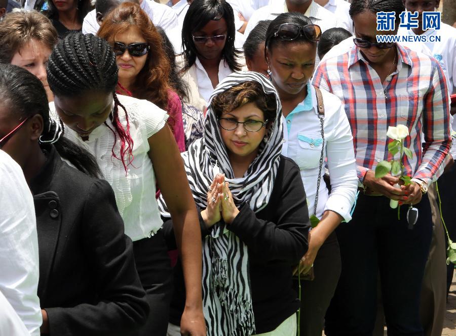 当天,内罗毕群众在韦斯特盖特商场前举行活动,悼念一年前商场恐怖袭击事件中的遇难者。2013年9月21日,韦斯特盖特商场发生严重恐怖袭击事件,这场持续4天的袭击事件造成包括妇女和儿童在内的67人丧生。新华社记者张晨摄