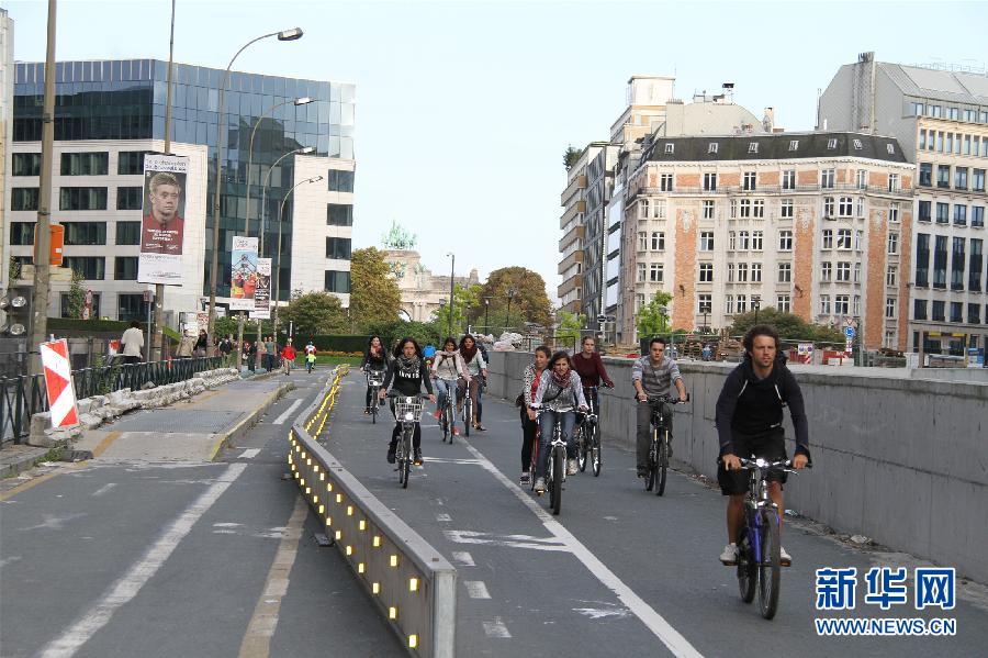 9月21日,在比利时布鲁塞尔,人们骑自行车上街。比利时首都布鲁塞尔21日开展2014年“无车星期日”活动,鼓励市民乘坐公共交通出行,树立绿色城市交通的环保理念。布鲁塞尔每年9月的一个周末都要举行“无车日”活动,期间市民可选择公共交通、骑自行车、滑轮滑或步行等方式出行。市民当天可免费乘坐公交、轻轨、地铁等市内公共交通工具。新华社记者 吴昌荣 摄