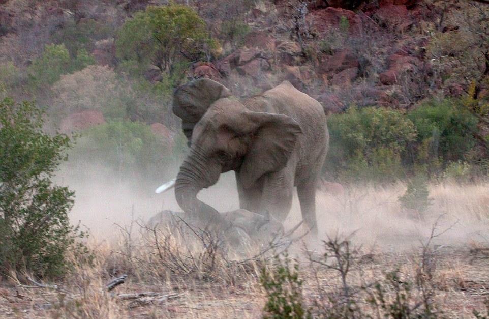 中国网9月22日讯 据英国《每日邮报》报道,动物世界的两个巨人——大象和犀牛,在非洲草原上不期而遇。面对处于狂暴状态的公象,想保护幼崽的母犀牛毫无招架之力。一对业余摄影师夫妇捕捉到这一可怕的景象。(网页截图)