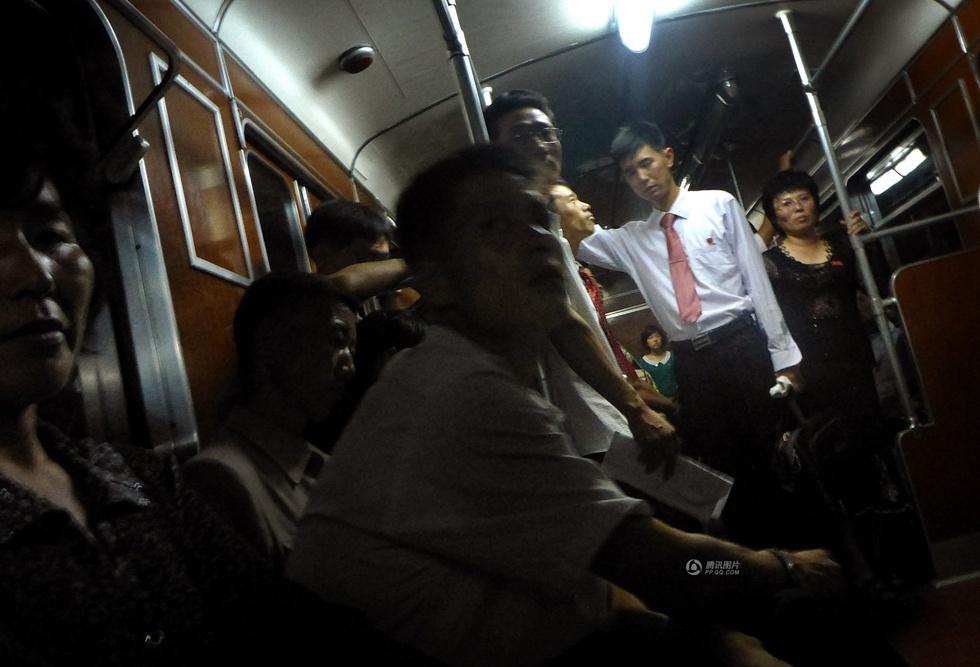 当地时间2014年9月1日,朝鲜平壤,朝鲜民众乘坐地铁。