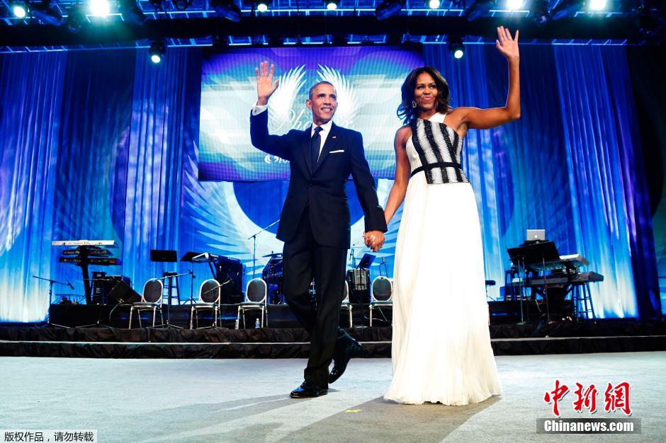 当地时间2014年9月27日,美国华盛顿,奥巴马与夫人米歇尔出席美国国会黑人议员团基金会年度凤凰奖颁奖晚宴。