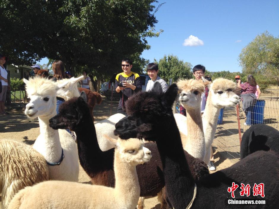 当地时间9月27日是美国国家羊驼农场节,旧金山湾区华人与呆萌羊驼近距离接触。羊驼主要产自南美安第斯山脉的秘鲁、智利和玻利维亚等地。羊驼的皮毛制品比羊毛更高档。中新社发 刘丹 摄