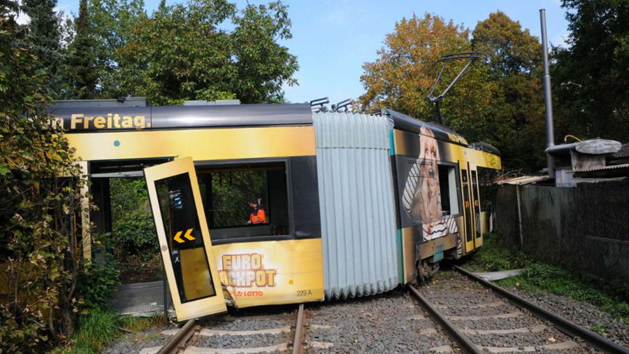 德国一轻轨列车因速度过快脱轨冲入公园(组图)