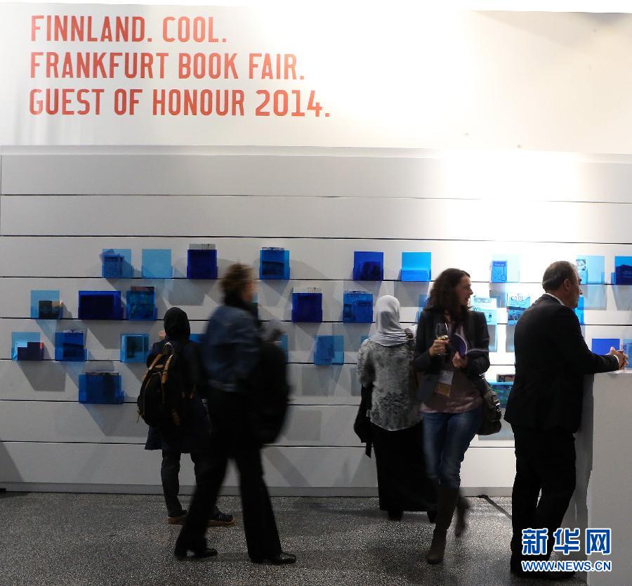 10月7日,在德国法兰克福举行的2014年法兰克福书展上,参观者从芬兰主宾国展馆外经过。 当晚,2014年法兰克福书展揭幕。新华社记者罗欢欢摄