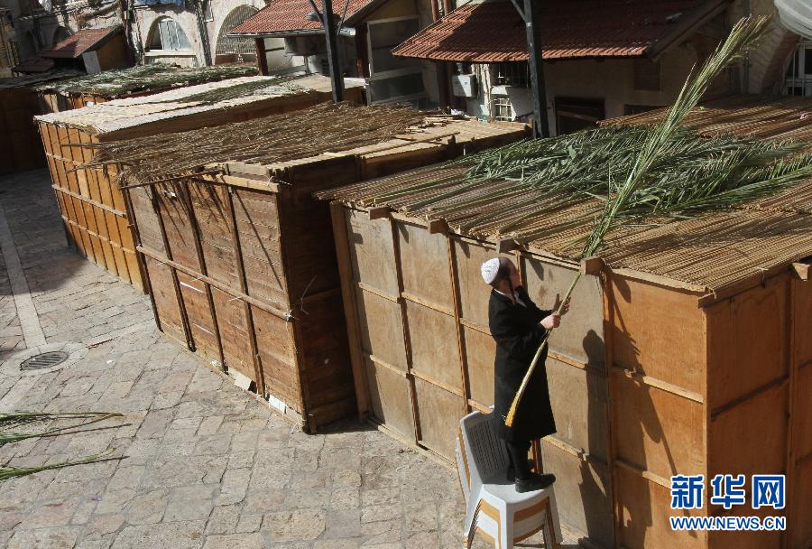 10月7日,在耶路撒冷的一个宗教社区,正统犹太教徒正在搭建住棚节期间使用的简易棚屋。住棚节是犹太教传统节日,以纪念犹太人祖先在离开埃及之后在旷野中漂泊期间居住棚屋的经历。今年住棚节将于10月8日日落开始。期间,犹太人会用木板或布料搭建临时棚屋,在其中进餐、待客、休息并举行宗教仪式。新华社发 (吉尔·科恩摄)