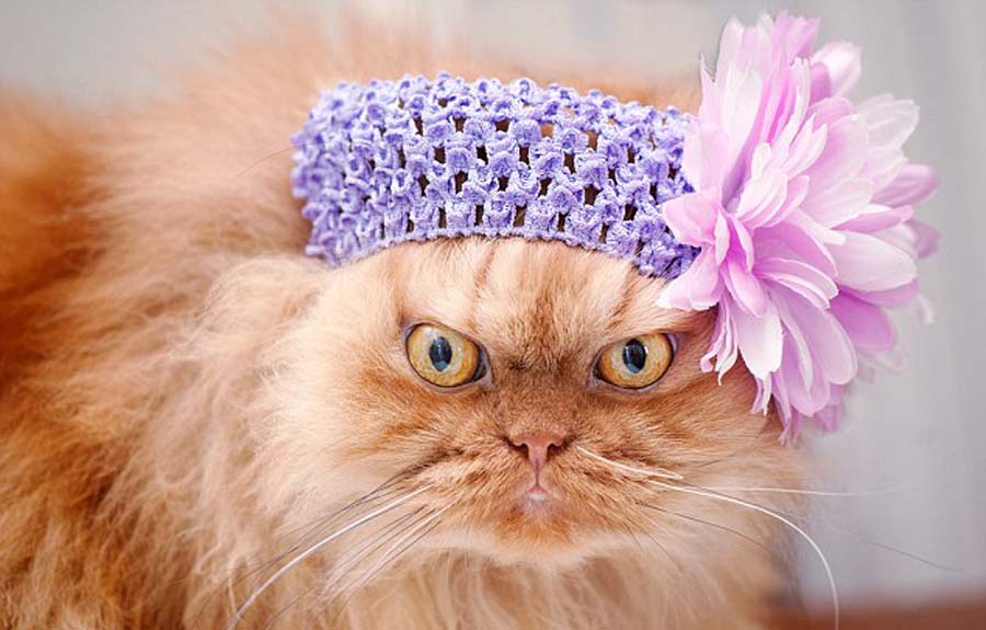加菲头戴有薰衣草样式的头巾。(网页截图)