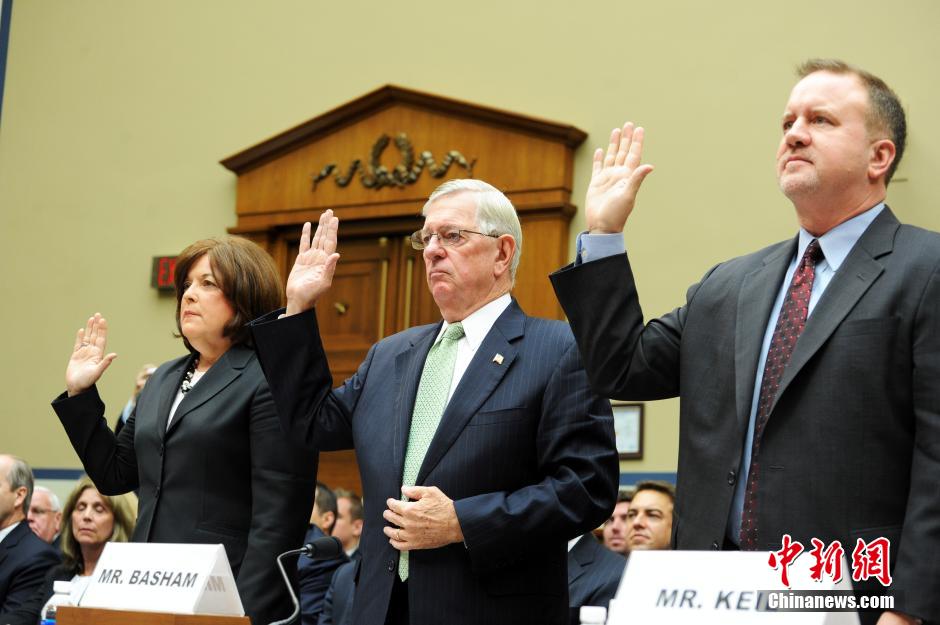 由于一位退役美军士兵近日成功持刀闯入白宫内部,逼近美国总统奥巴马一家“生活区”,负责保护白宫安全的特工处30日因“护主不力”受到国会两党议员严厉责问。最新数字显示,过去5年白宫共抓捕16位翻越围栏“擅闯”白宫的人士,仅今年以来就抓捕了6位,安保面临巨大压力。 图为特工处处长皮尔森(最左)、前处长(中)等人出席听证会。 中新社发 张蔚然 摄