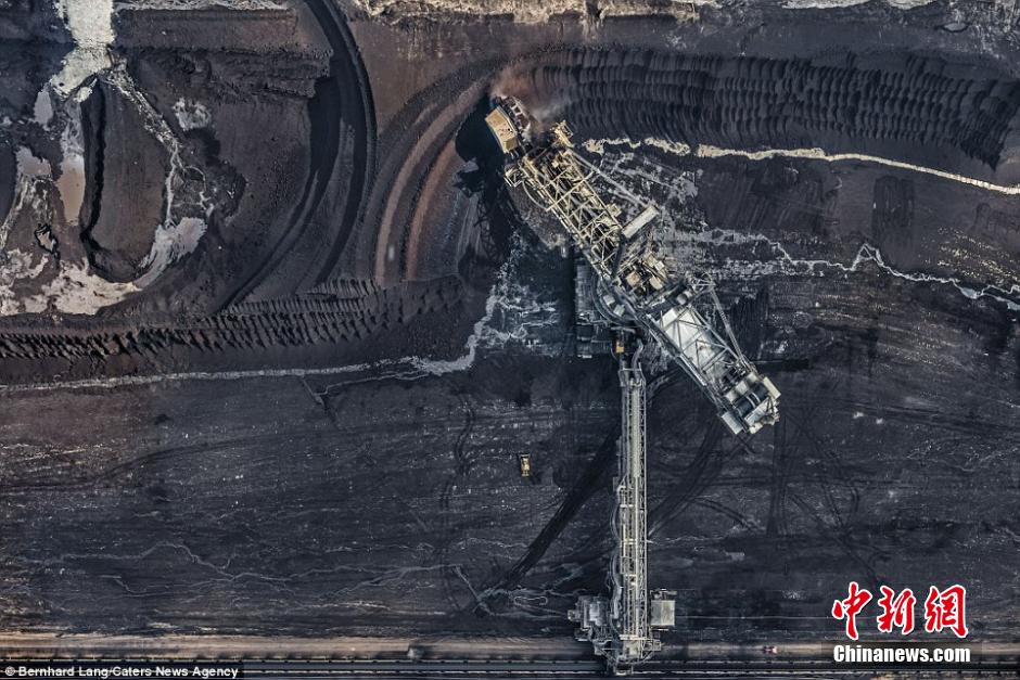 当地时间2014年10月4日报道,Bernhard Lang,德国摄影师,出生于1970年,这组航拍作品创作于2014年5月,拍摄的是德国最大的露天煤矿区之一,该矿区所形成的孔洞有近1500英尺深,占地近35平方公里。 (网页截图)