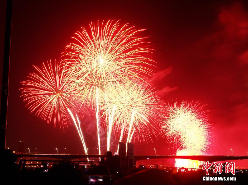 韩国当地时间10月4日晚,美丽的烟花点亮了首尔夜空。当日,第12届首尔国际烟花节在汝矣岛汉江公园举行,来自英国、中国、意大利和韩国的烟花表演队分别进行了具有本国特色的烟花展示。 中新社发 贾天勇 摄
