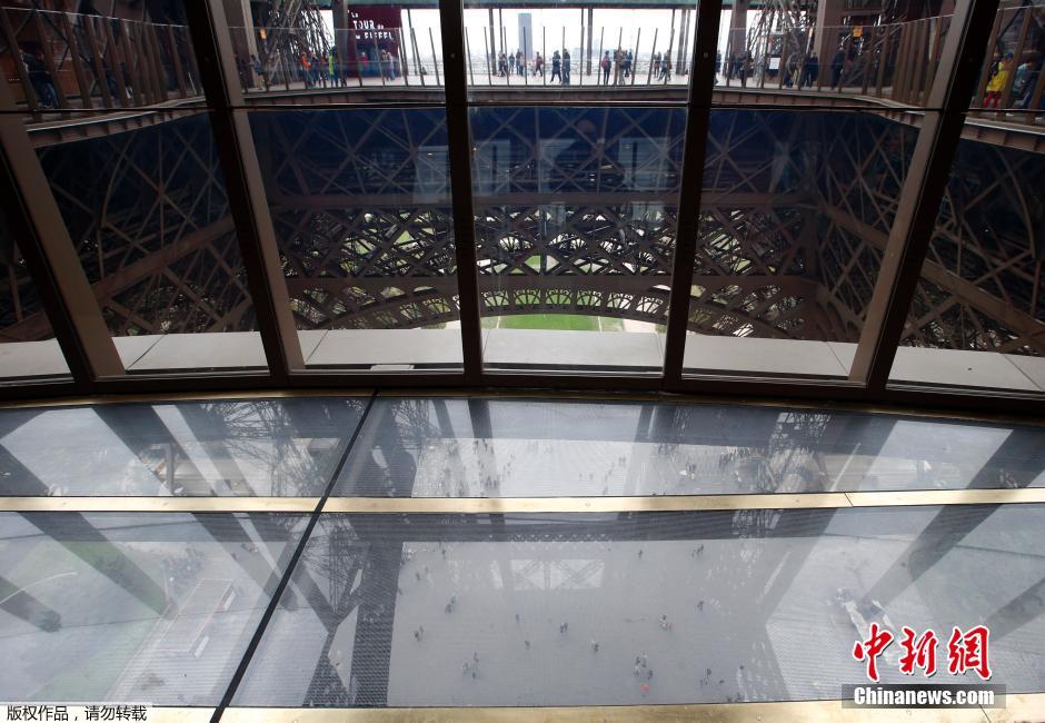 当地时间10月3日,法国巴黎,游客参观埃菲尔铁塔。法国首都巴黎地标建筑埃菲尔铁塔的一项整修工程6日即将完工,新改建的铁塔首层玻璃地面将成为一处新景观。先前,埃菲尔铁塔325米高的空中观景台是吸引游客最多的景观,而老旧的塔底首层则鲜有人问津。运营方希望改建后的玻璃地面能够为游客提供一处舒适的休息和观景场所。玻璃地面位于铁塔中空结构的正下方基座。今后,游客可以站在玻璃地面上俯视距离脚底57米的地面。整修工程耗时两年,造价3750万美元,包括新建几家商店和餐厅以及一座介绍铁塔125年历史、由七块显示屏构成的小型博物馆。