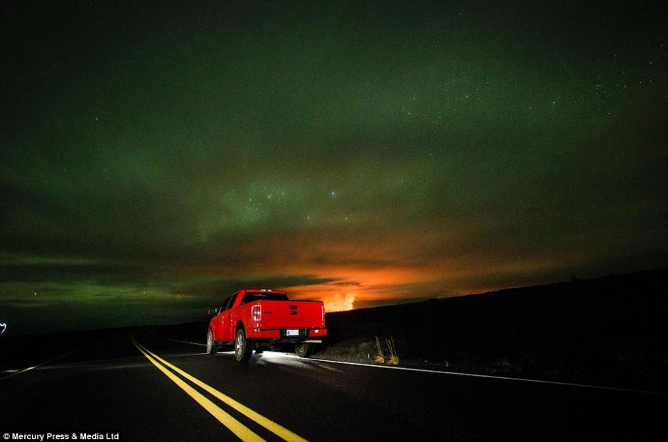 据《每日邮报》2014年10月7日报道,日前一名摄影师网晒自己驱车前往夏威夷一喷发火山拍摄的壮丽照片,引网友围观。(网页截图)