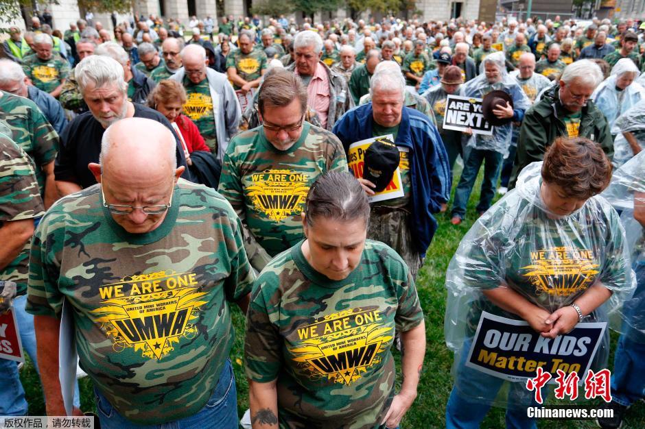 当地时间2014年10月7日,美国华盛顿,联合矿工工会的成员举行示威游行,抗议环保局清洁能源规划,声称该计划将会破坏国家的煤炭行业,以及相关就业。