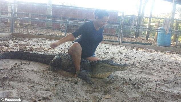 美国怀孕7个月准妈妈与鳄鱼玩“肉搏”