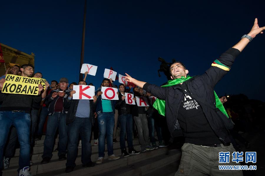 10月10日,市民在奥地利首都维也纳参加反对“伊斯兰国”游行。当日,5000多位民众在维也纳举行游行,强烈谴责极端组织“伊斯兰国”武装攻击叙利亚边境城市科巴尼的犯罪行径。 新华社记者钱一摄