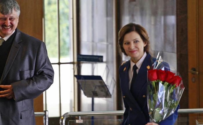 据俄罗斯国际文传电讯社报道,当地时间10月9日,今年8月以来一直代理总理一职的谢尔盖·阿克谢诺夫正式当选克里米亚总理。不过,在他履新后召开的克里米亚国务委员会会议上,最吸引眼球的仍是美女检察长纳塔莉娅·波克隆斯卡娅。阿克谢诺夫在就职演讲中特别感谢了波克隆斯卡娅,称她所做的工作“许多男人都无力承担”。图片来源:环球网