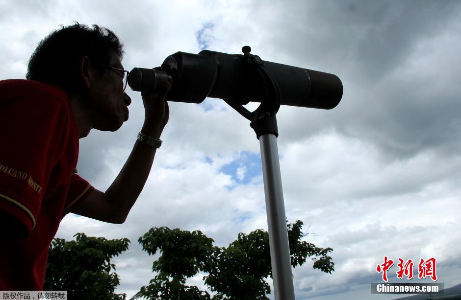 当地时间10月12日,菲律宾马荣火山喷发白色浓烟,当地政府紧急疏散周边6公里范围内的63000余名居民。图为科研人员在密切关注火山动态。