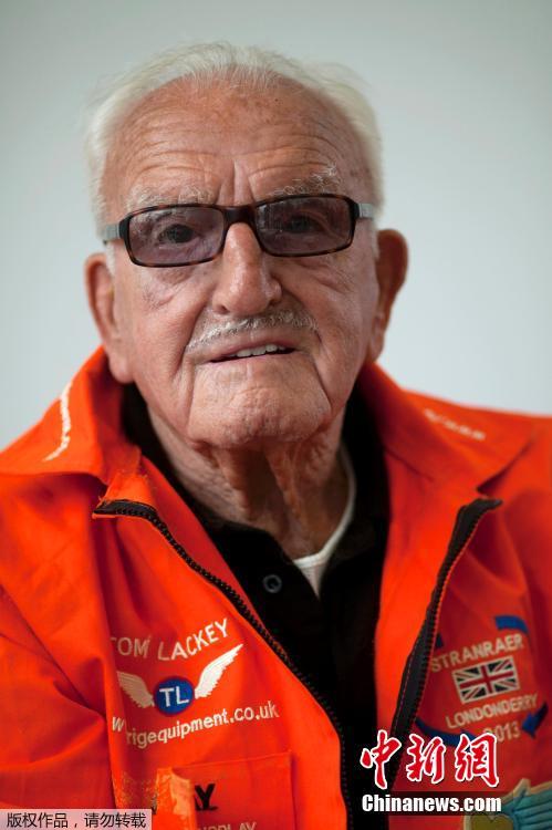 当地时间2014年10月11日,西班牙直布罗陀,94岁高龄翼走者Tom Lackey,站在旧式双翼飞机顶部完成环绕直布罗陀岩石的飞行,成为世界上年龄最大的翼走者。
