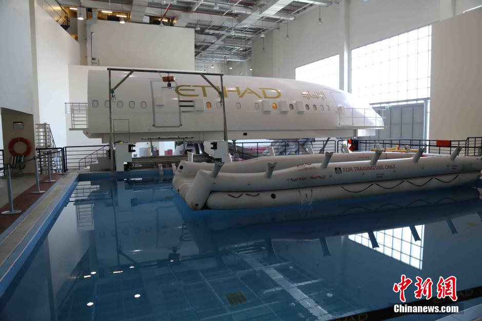 10月12日,阿联酋阿提哈德航空公司位于阿布扎比的世界级创新与培训中心向中国媒体开放,揭开神秘面纱。在中心内,不仅展示了该航空公司为即将到来的空客A380和波音787客机独创的“空中官邸”、公寓式头等舱和套间头等舱的实体模型,还展示了各类机型的模拟训练设备,包括目前世界上最先进的空客A380和波音787的1:1驾驶舱模拟器,以及空乘人员的培训和空中安全防护等项目演示。中新社发 潘旭临 摄