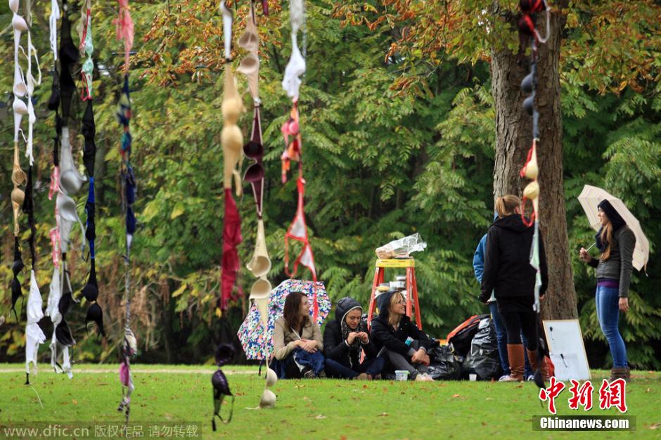 荷兰一公园树上挂满文胸 庆祝“国际女童日”
